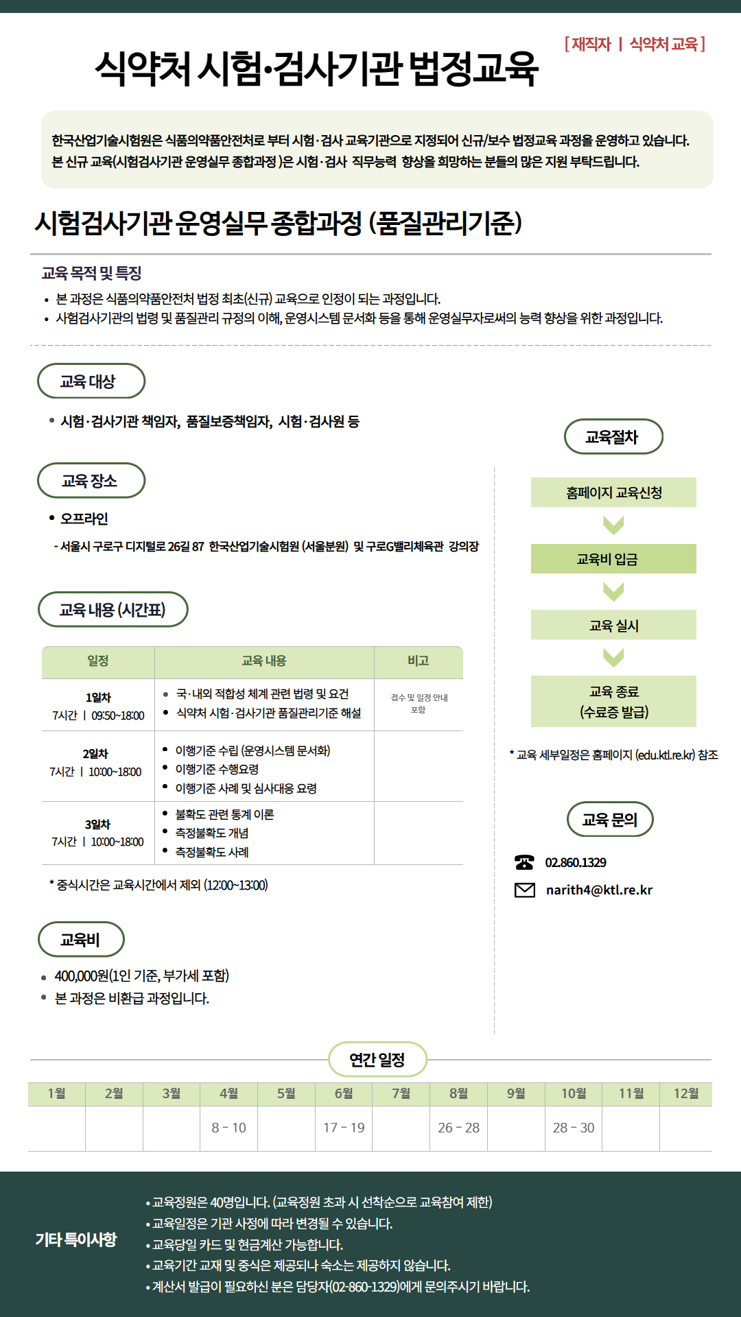 [재직자] 오프라인 유료 2026년 식약처 시험검사기관 법정교육 (품질관리기준)